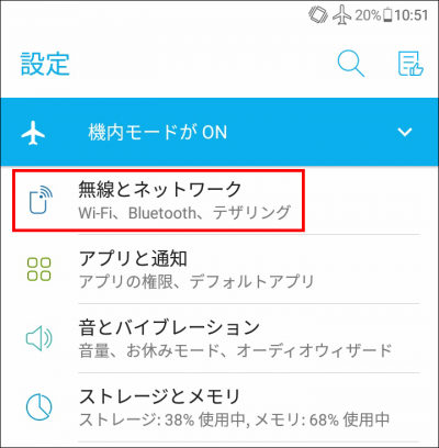 ANDROIDの機内モードを解除する方法を教えてください